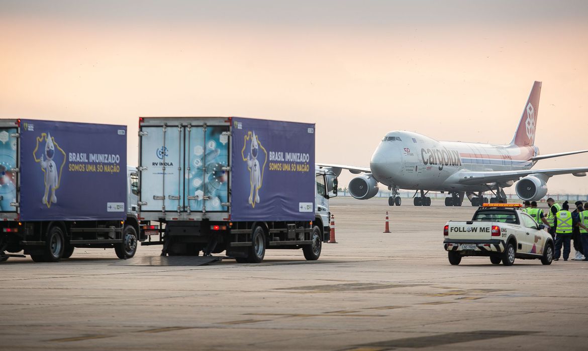 O produto, procedente da China, chegou ao Aeroporto Internacional do Rio de Janeiro (Tom Jobim/Galeão) às 6h22 deste domingo. Inicialmente, o voo estava previsto para chegar às 18h de ontem (27). O motivo da mudança da data se deveu a um atraso na conexão do voo.