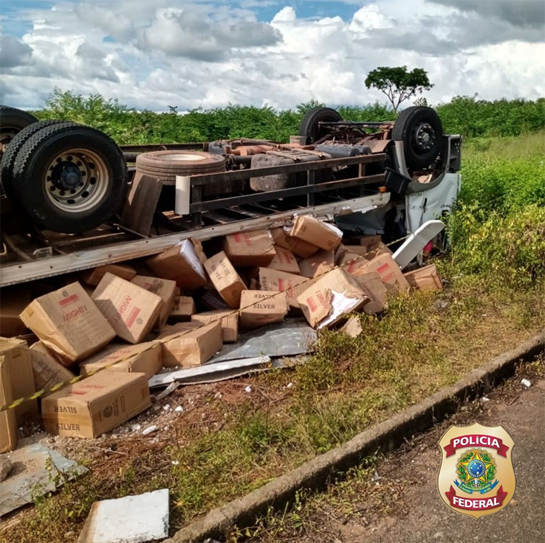 A Polícia Federal divulgou um balanço da apreensão de cigarros de origem paraguaia que foram abandonados após um caminhão tombar na PI-301, próximo ao povoado Brejinho, no município de Luís Correia, no litoral do Piauí. Foram contabilizadas 750 caixas de cigarros, provavelmente, contrabandeados.
