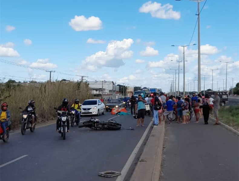 Um grave acidente entre uma carreta e uma motocicleta deixou um morto na BR-316, no fim da manhã desta quinta-feira (15). Allison Bispo dos Santos, 26 anos, colidiu em um bloco de concreto, conhecido como gelo-baiano, e foi arremessado embaixo do veículo pesado.