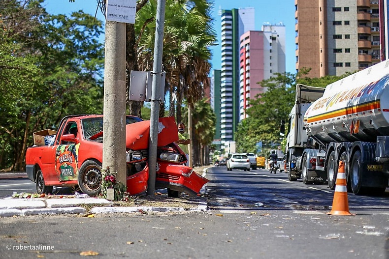 Um motorista de veículo de uma frutaria ficou ferido após colidir com um semáforo na manhã desta segunda-feira (09) no cruzamento da Avenida Marechal Castelo Branco com a rua Olavo Bilac, bairro Ilhotas, zona sul de Teresina.