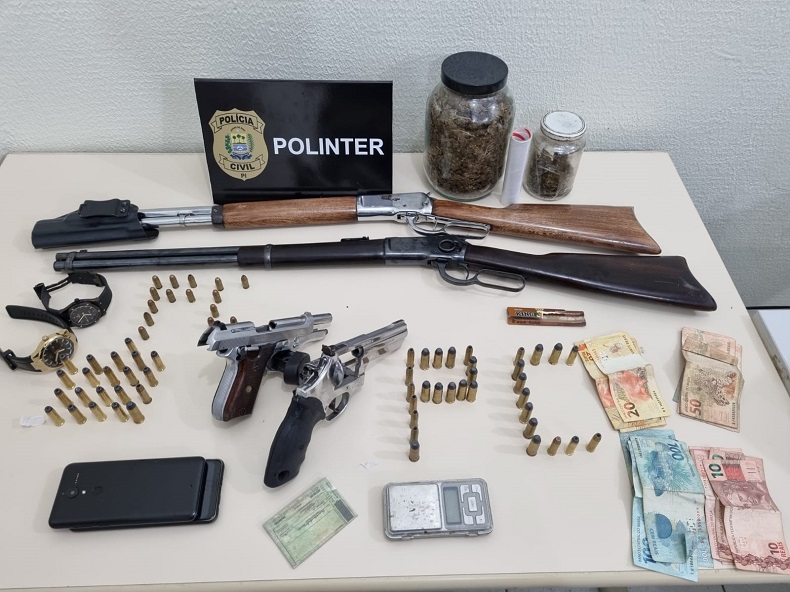 Com os dois homens, os policiais encontraram uma pistola, um revólver e dois rifles, além de uma quantidade considerável de skunk, droga também conhecida como supermaconha.
