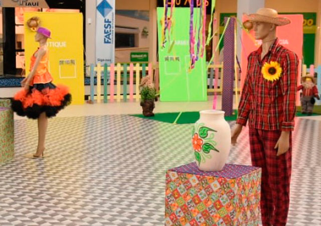 A exposição conta com uma diversidade de lindas peças em pinturas, jardinagem, decoração e bordados remetendo ao cenário junino composto por materiais que uniram argila, palha, entre outros.