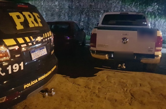 Ao realizar a abordagem no veículo VW/AMAROK conduzido por um homem de 49 anos os policiais encontraram no interior do veículo R$ 23.800,00 em espécie distribuído em notas de 50, 100 e 200 reais sem a devida comprovação.