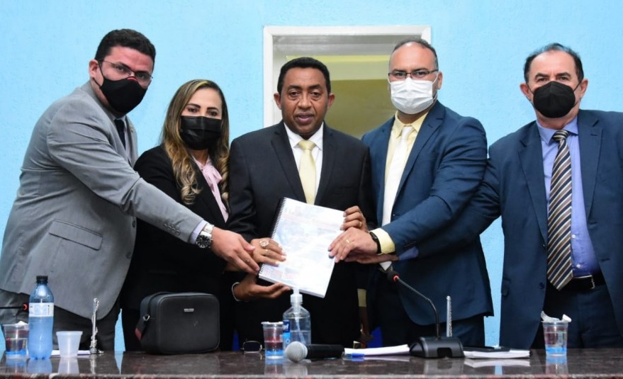 A sessão encerrou com a entrega pelo prefeito Joel ao presidente da Câmara, Joab Curvina, de um relatório contendo as ações realizadas pela gestão municipal em 2021 e o que está projetado para o ano de 2022.