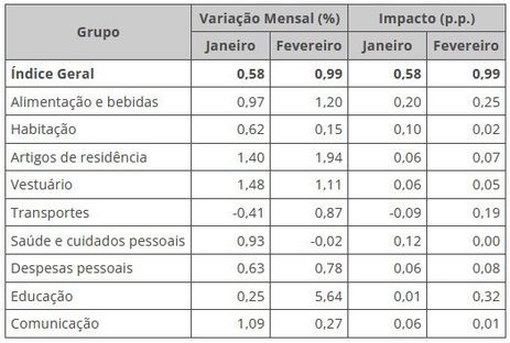 Houve variações positivas em oito dos nove grupos de produtos e serviços pesquisados. A exceção foi saúde e cuidados pessoais, cujos preços recuaram 0,02%, após a alta de 0,93% verificada em janeiro.