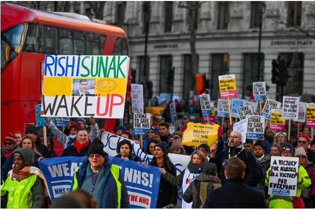 Cerca de 500 mil trabalhadores, muitos do setor público, têm realizado greves desde o verão europeu no ano passado, aumentando a pressão sobre o primeiro-ministro, Rishi Sunak, para resolver os conflitos e limitar a interrupção dos serviços públicos, como ferrovias e escolas.