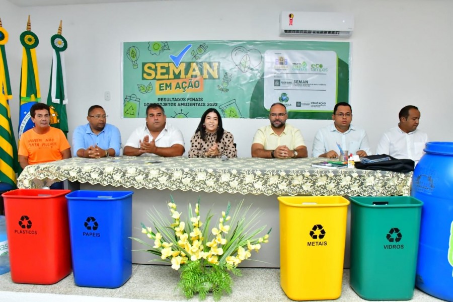 A Prefeitura de Floriano, através da Secretaria de Meio Ambiente e Recursos Naturais - SEMAN, promoveu, nesta manhã (10), no auditório da Secretaria de Educação, uma ação para apresentação dos resultados dos projetos ambientais desenvolvidos pela pasta durante o ano de 2022, entre eles três principais: Projeto Escola Seletiva, ÓleoColetar e Ecotampas.