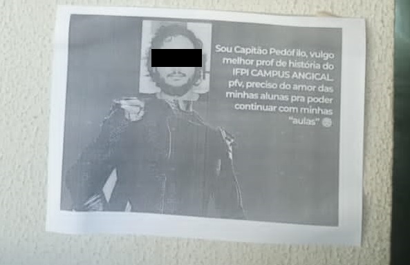 Alunos do Instituto Federal do Piauí da cidade de Angical foram surpreendidos na manhã desta quarta-feira, 13, com pichações e cartazes fixados em todas as áreas do prédio com supostas acusações de assedio por um professor da instituição. O homem é professor do curso de História e já foi candidato à prefeito de Teresina pelo PSOL, em 2016. Em alguns desses cartazes é possível ler conversas de WhatsApp onde o docente diz estar apaixonado por uma aluna (menor de idade).