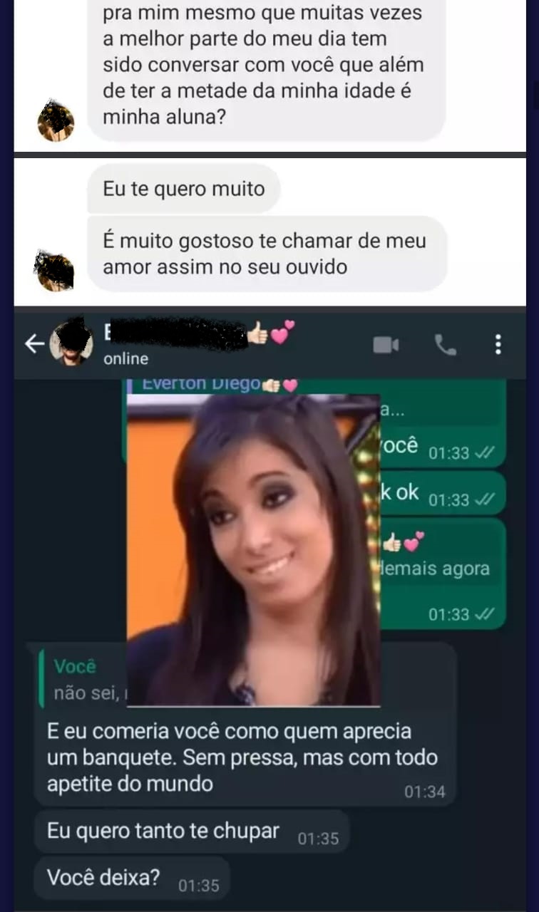Uma das conversas expostas, o professor chega a afirmar que "comeria" (se referindo a ter relações sexuais) uma aluna como um "banquete".