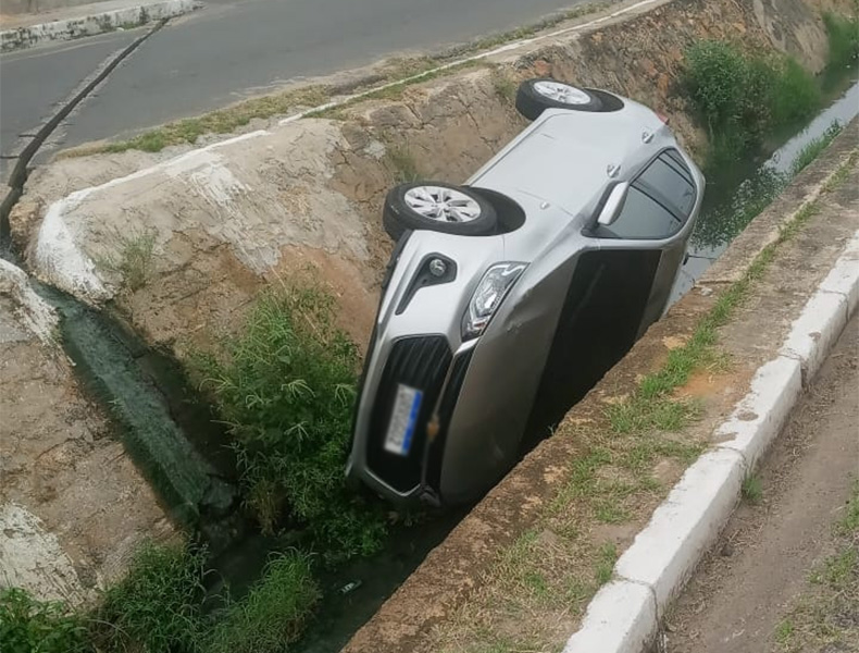 O motorista de um veículo de passeio perdeu o controle e caiu em uma galeria a céu aberto no bairro Mocambinho, na zona Norte de Teresina.