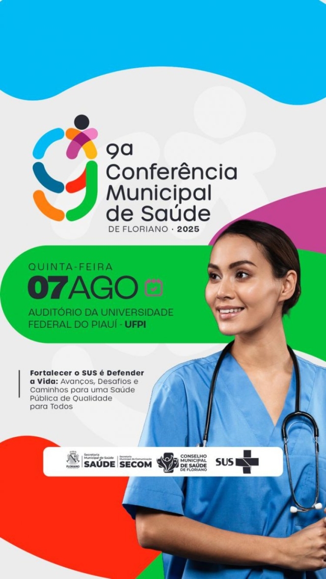 A Prefeitura de Floriano, por meio da Secretaria Municipal de Saúde e do Conselho Municipal de Saúde, está nos últimos preparativos para a realização da 9ª Conferência Municipal de Saúde, que acontecerá no dia 7 de agosto, a partir das 7h30, no auditório da Universidade Federal do Piauí (UFPI), Campus Amílcar Ferreira Sobral. As inscrições serão realizadas no próprio local do evento.