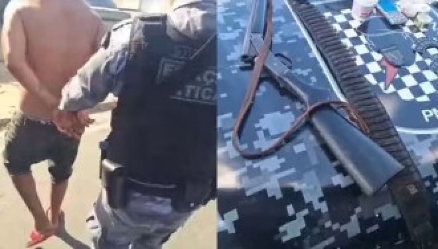 As equipes da PM localizaram “Bico Doce” em sua casa no bairro Vermelha. Durante a prisão, os policiais apreenderam uma carabina com numeração apagada, uma cartucheira, sete cartuchos, cocaína, maconha, uma balança de precisão, embalagens plásticas e um celular.