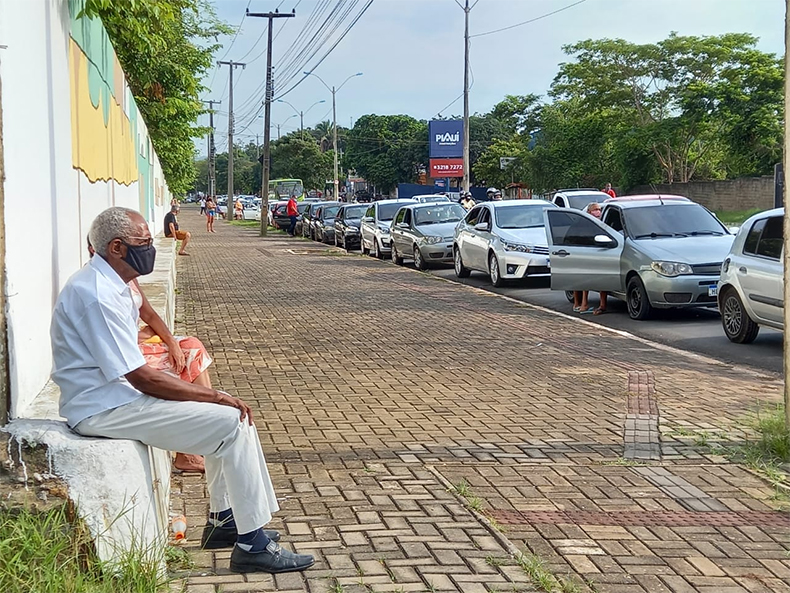 Duas horas antes do início da vacinação já havia fila de carros em Teresina para a imunização de idosos na faixa etária de 80 anos. Às 7h, desta sexta-feira (12), pelo menos, 20 carros se enfileiravam no Terminal de Integração Livramento, no Grande Dirceu, um dos dez pontos de vacinação drive-thru.