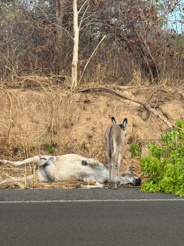Na manhã do último sábado, por volta das 7h, o vereador Dessim Almeida, da cidade de Floriano, na companhia de dois amigos, Alfredo Pereira e Lucas Wariss, protagonizaram um gesto de solidariedade que ganhou as redes sociais. Durante deslocamento pela PI-140, eles se depararam com uma cena triste: um filhote de jumento ao lado do corpo sem vida de sua mãe (possivelmente vítima de atropelamento).